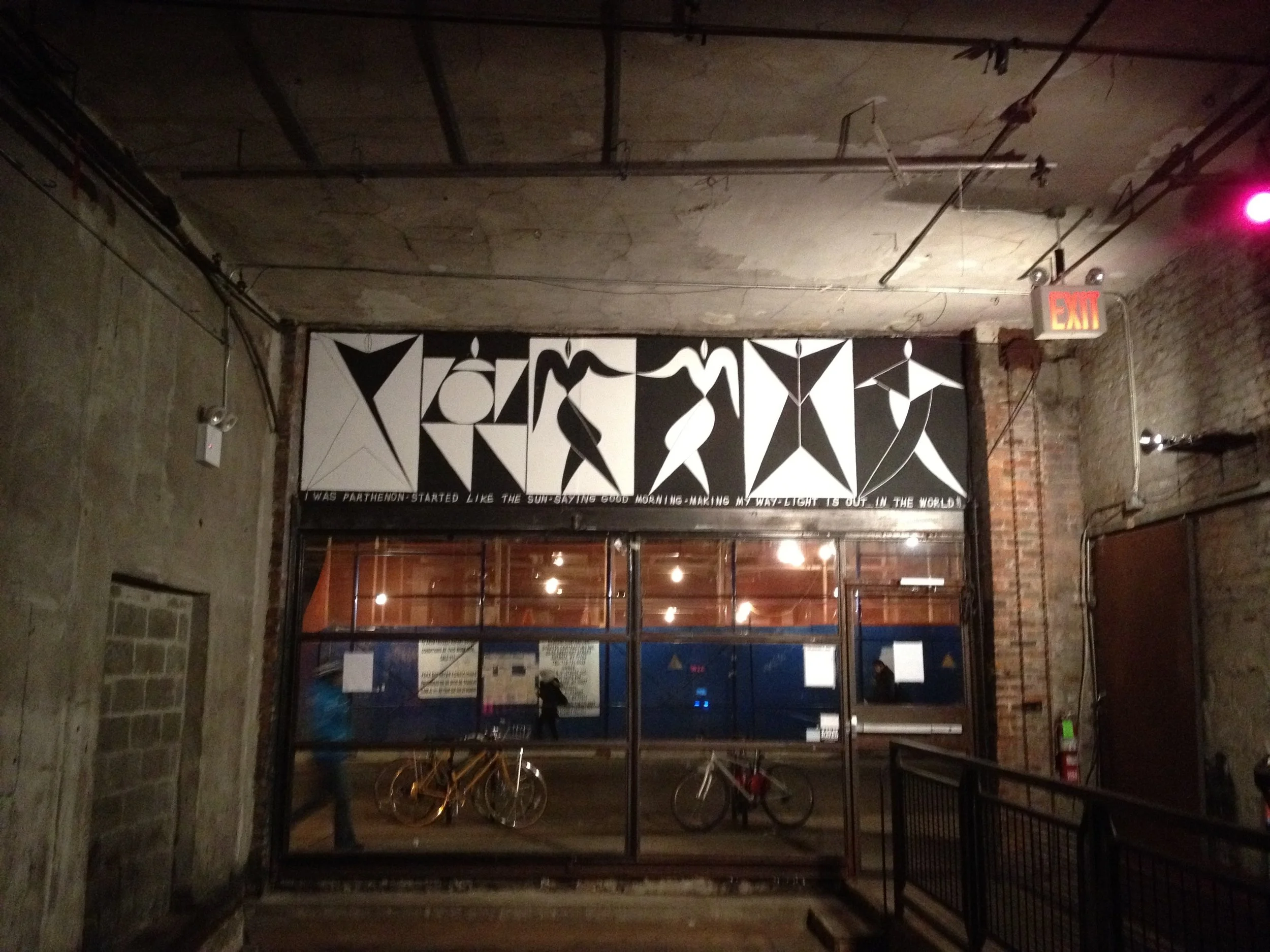 Our buddy Sto of Cinders Gallery was here recently, painting away. PACS hosted a music video shoot for Man Forever, who recently signed to Thrill Jockey. MF is the brainchild of John Kid Millions Collpits, who’s best known as the drummer for Brooklyn’s own Oneida. The live lineup is always in a state of flux, but members of Vampire Weekend, Blues, Yo La Tango, Yeah Yeah Yeahs and more have stopped in on previous engagements. Here’s some photos from the shoot, and you can see the video / read more via Impose TV.